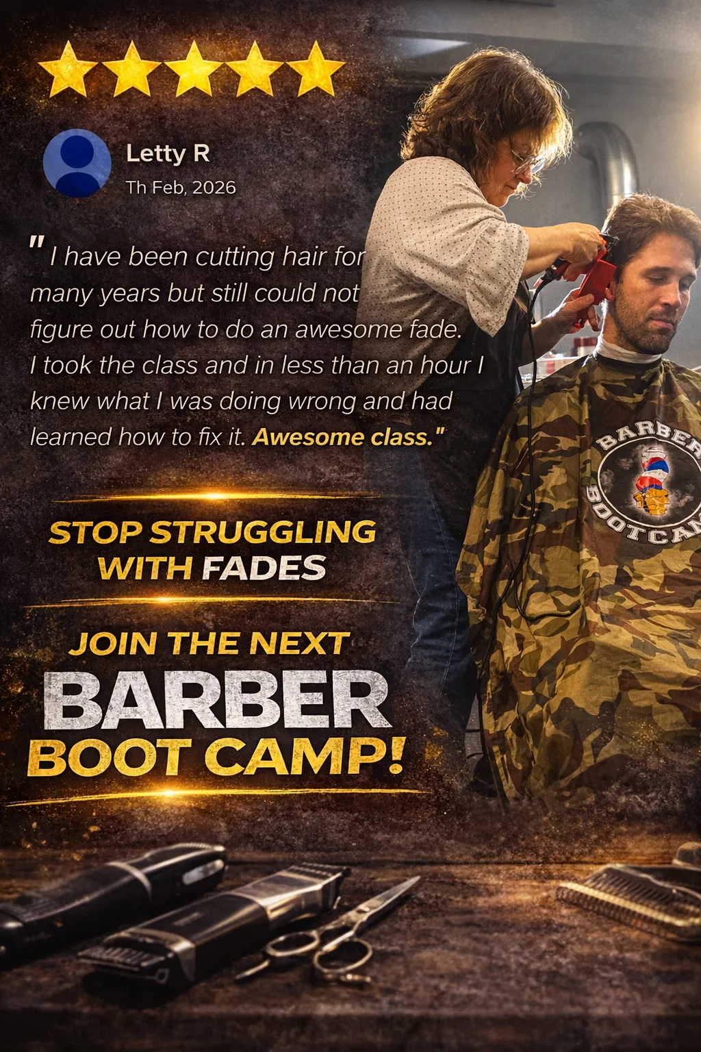 Barber Boot Camp for Cosmetologists Seminars are not just any barber class. Our seminars are hands-on barber classes, specifically designed for
