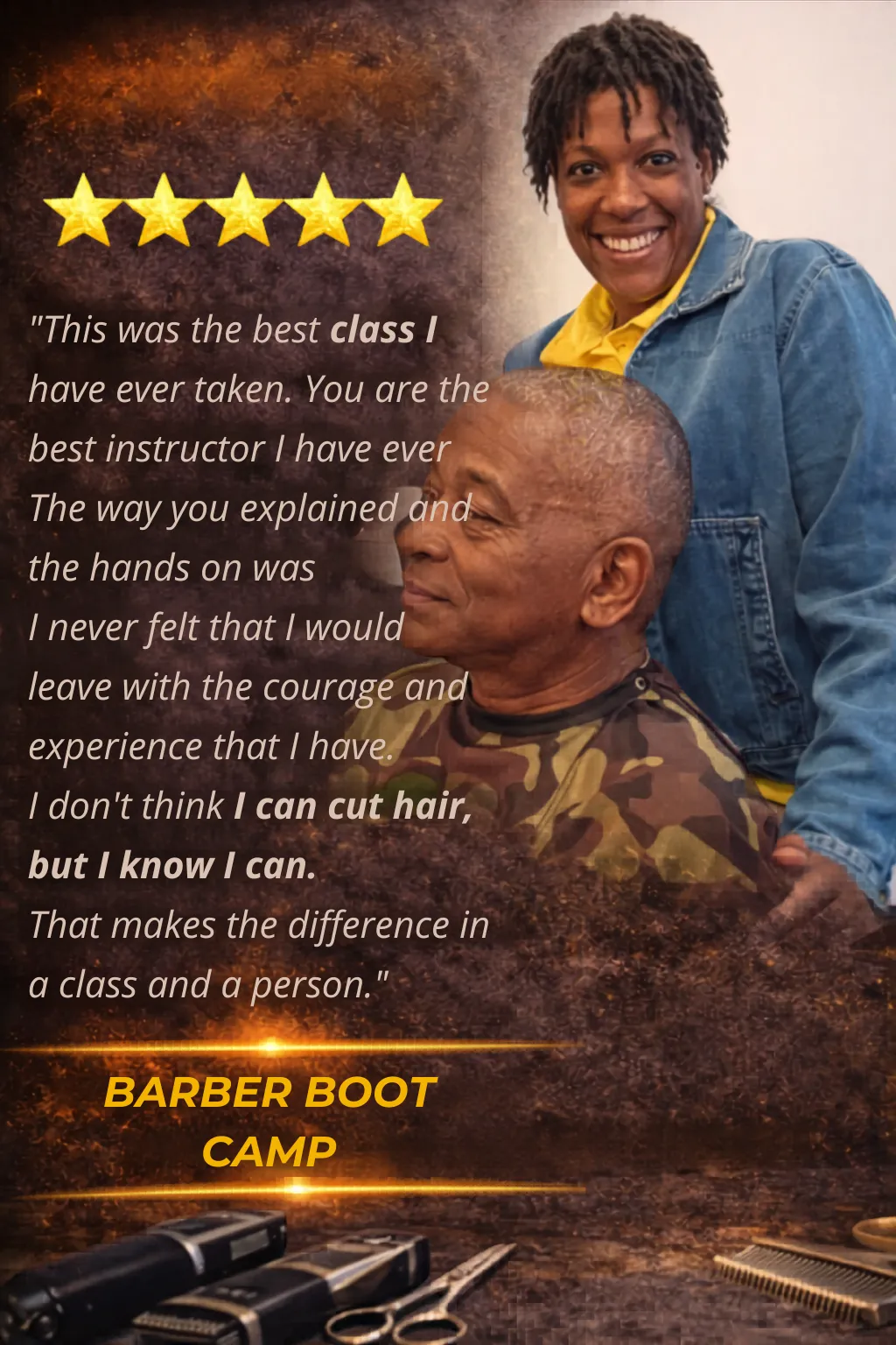 That’s actually a great place to start. Here’s why: 👉 You don’t have any bad habits to unlearn. 👉 You’re a blank slate—and we’ll give you the right system from day one. Barber Boot Camp was designed with beginners in mind. Our step-by-step system is clear, focused, and easy to follow—even if you’ve barely picked up a pair of clippers. And we don’t just show you how to cut—we explain the why behind every step. That way, you walk away with real confidence, not just repetition. Every student learns at their own pace, but many of our past attendees started exactly where you are—and now they’re faster, cleaner, and far more consistent with their cuts. Don’t just take our word for it—click here to hear their stories. You've got this—and we’ve got you.