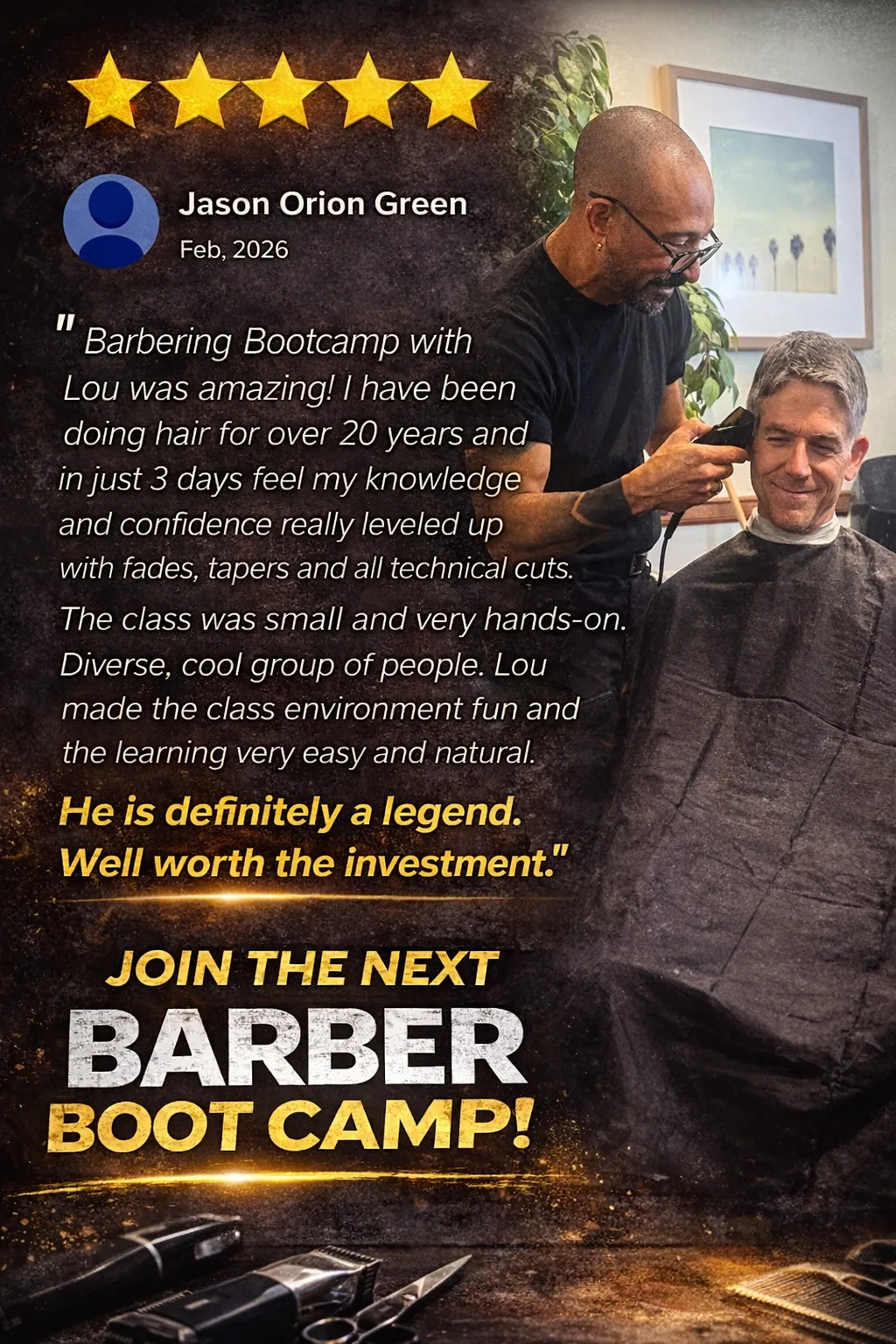 That’s actually a great place to start. Here’s why: 👉 You don’t have any bad habits to unlearn. 👉 You’re a blank slate—and we’ll give you the right system from day one. Barber Boot Camp was designed with beginners in mind. Our step-by-step system is clear, focused, and easy to follow—even if you’ve barely picked up a pair of clippers. And we don’t just show you how to cut—we explain the why behind every step. That way, you walk away with real confidence, not just repetition. Every student learns at their own pace, but many of our past attendees started exactly where you are—and now they’re faster, cleaner, and far more consistent with their cuts. Don’t just take our word for it—click here to hear their stories. You've got this—and we’ve got you.